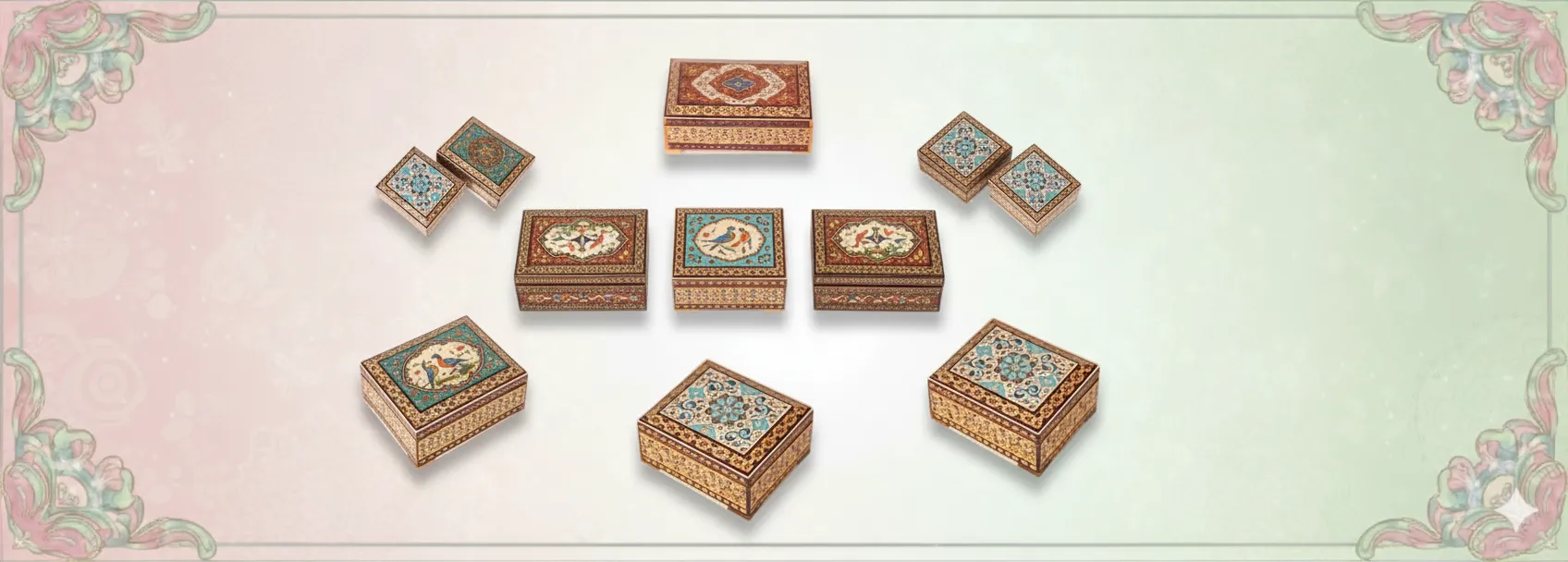 - جعبههای خاتم کاری شده، قابها و تابلوها هدیههایی منحصر به فرد و فرهنگی هستند.
